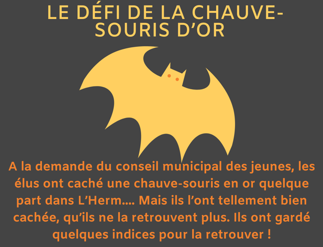 A la demande du conseil municipal des jeunes, les élus ont caché une chauve-souris en or quelque part dans L’Herm.... Mais ils l’ont...